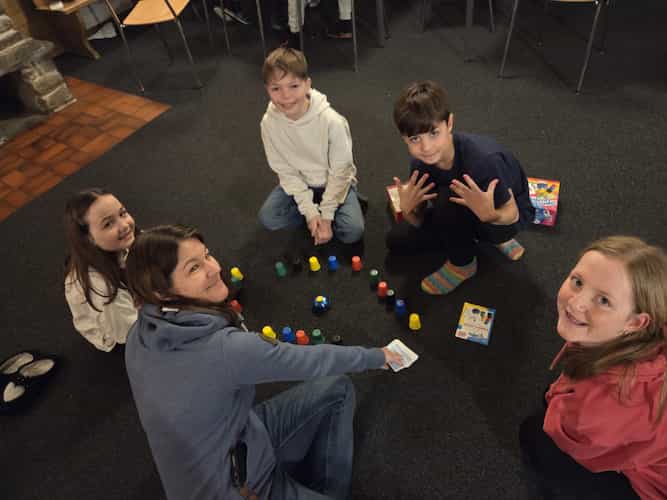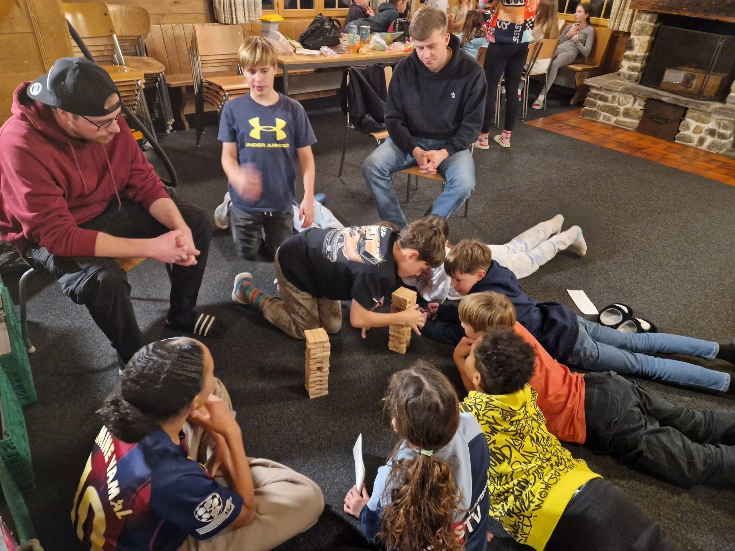Nach der Ankunft im Lagerhaus «Heitimatte» wurden die Zimmer eingerichtet und nach dem Znacht wurde bereits das erste Mal um die Wette gespielt. Gämsche, Tschau Sepp, Jenga und Uno waren im Angebot und die Gruppen konnten sich bei einem Gewinn wertvolle Punkte sichern.