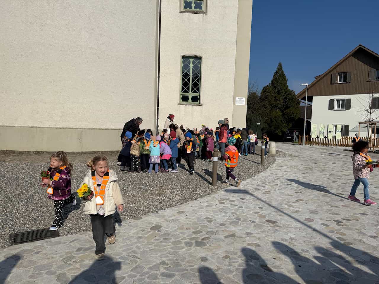 Ausgerüstet mit bunten «Primelis» überreichten die Kinder den Dorfbewohnerinnen und Dorfbewohnern kleine Frühlingsgrüsse. Die liebevolle Geste sorgte vielerorts für überraschte und erfreute Gesichter. Gleichzeitig bewiesen die Kinder Mut, indem sie offen auf fremde Menschen zugingen – eine Herausforderung, die sie mit Bravour meisterten.